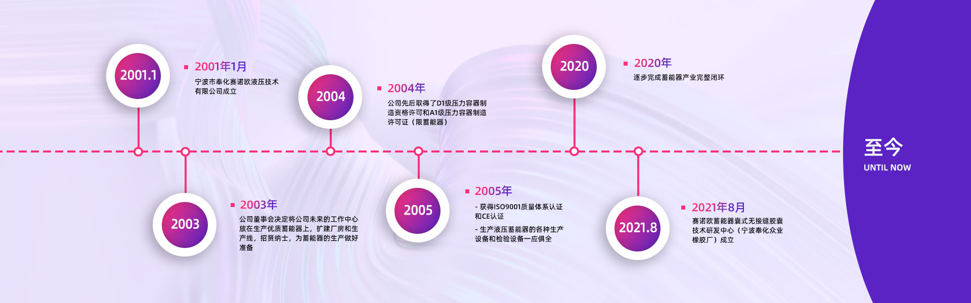 寧波市奉化賽諾歐液壓技術(shù)有限公司創(chuàng)建于2001年7月,是國(guó)內(nèi)優(yōu)秀的液壓蓄能器專業(yè)制造公司,制造設(shè)備齊全,檢測(cè)手段完善。同時(shí)也是探索蓄能器囊式結(jié)構(gòu)一體化的科研創(chuàng)新型企業(yè)。 2001年,公司董事會(huì)決定將公司未來的工作重心放在生產(chǎn)優(yōu)質(zhì)蓄能器上。公司一方面著手于廠房擴(kuò)建和生···